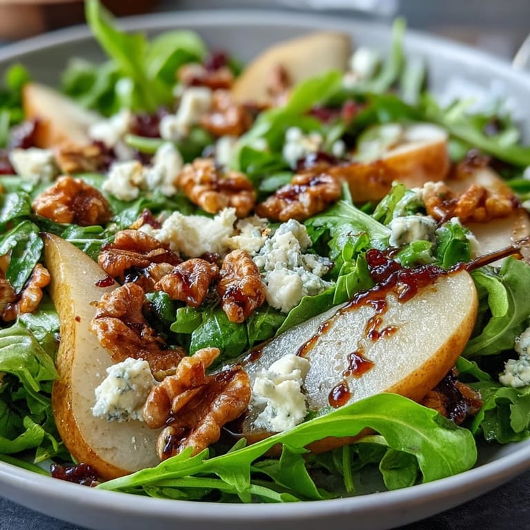 Pin this My neighbor dropped off a bag of pears from her tree one September afternoon, and I had no idea what to do with them until I opened my fridge and saw the arugula I'd bought on impulse. That's when it clicked—a simple salad with peppery greens, sweet fruit, something creamy, something crunchy. The whole thing came together in the time it takes to make tea, and somehow it felt like the most elegant lunch I'd made all week.