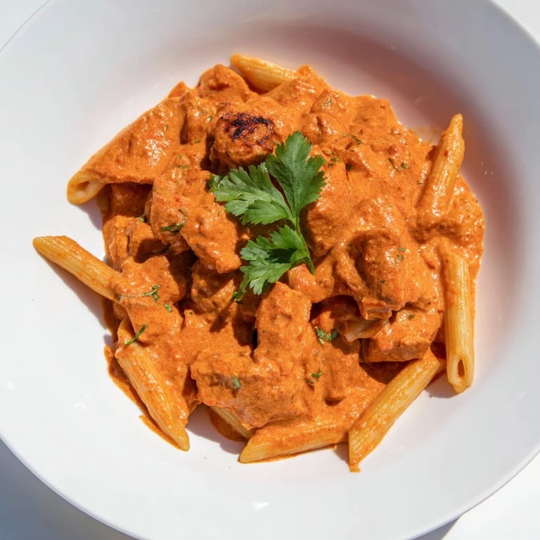 - Add the cooked chicken tikka pieces to the sauce, then toss in the drained pasta. Stir gently until every piece of penne is glossed with that spiced, creamy goodness.