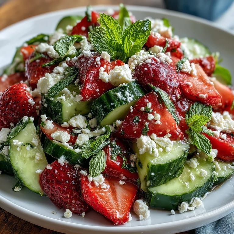Pin this Last spring, my neighbor stopped by with a basket of strawberries so perfect they looked almost unreal, and I suddenly realized I had nothing to do with them except eat them plain. That's when I grabbed a cucumber from my crisper drawer and thought, why not? What emerged was this salad that tastes like the season itself—bright, clean, and somehow both simple and special.