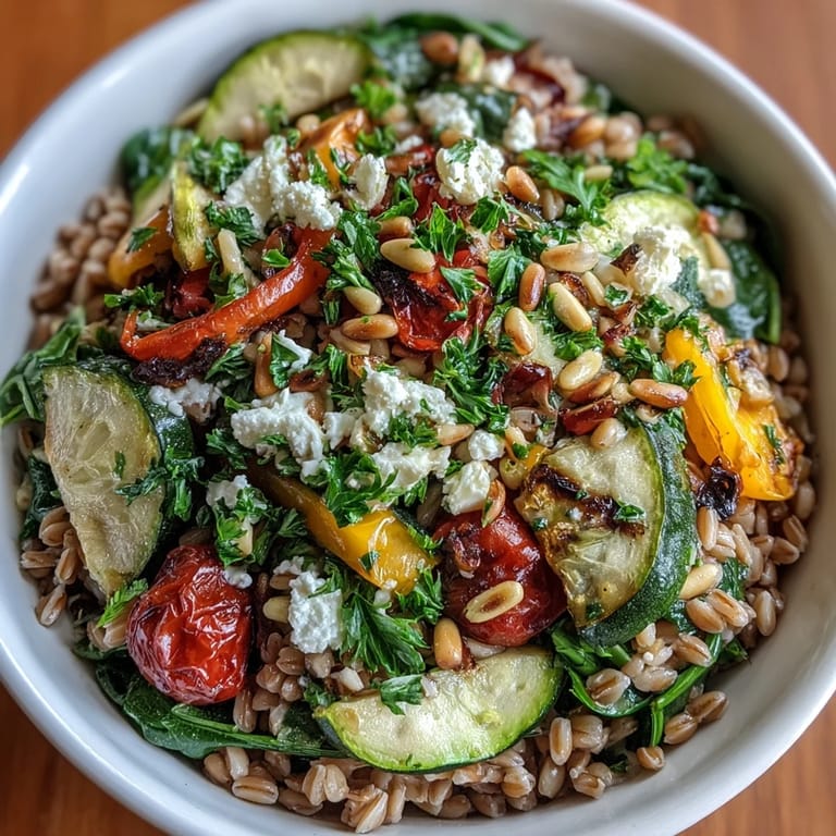 Pin this My neighbor brought over a bowl of this farro pasta one evening, and I watched her toss it together so casually that I thought I'd been missing something obvious all along. The way those colorful vegetables tumbled together with the nutty pasta and bright lemon dressing felt effortless, like she wasn't even thinking about it. What struck me most was how the kitchen smelled while it came together—garlicky and warm, with that sharp citrus note cutting through everything at the end. I asked for the recipe on the spot, and what I've discovered since then is that this bowl somehow tastes even better than it looks, which is saying something.