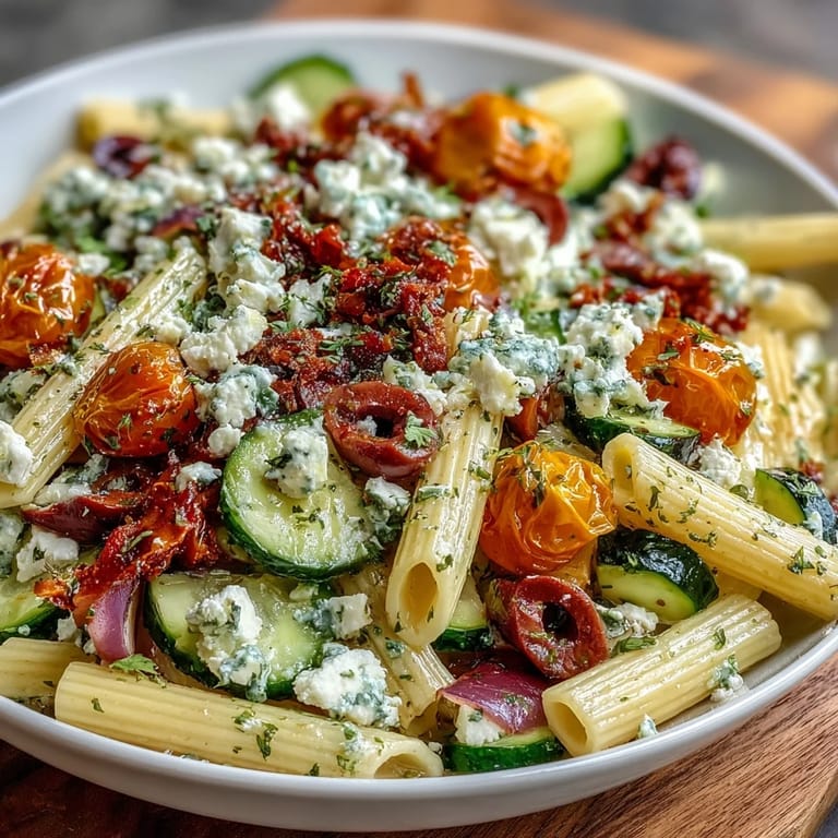 Pin this My neighbor tossed together this Greek pasta salad on a sweltering afternoon, and I watched her pull it straight from the fridge with the kind of ease that only comes from making something a hundred times. The way the feta crumbled across the top, how the olives glistened in that golden dressing—I realized right then that some of the best meals don't require any cooking skill, just good ingredients and the confidence to let them shine. She handed me a bowl and somehow, that simple gesture turned into the dish I now make whenever I need something that feels both effortless and impressive.