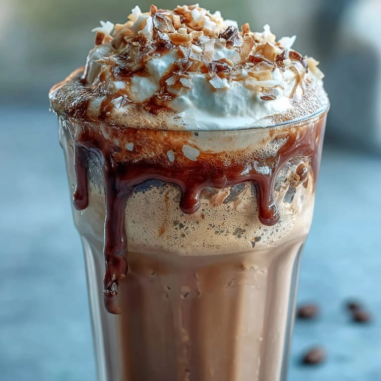 The frappuccino itself needs to be consumed immediately because ice melts and the texture becomes soupy within minutes, but you can actually toast your coconut and prep your foam ingredients the night before if you're serving this to guests. This drink is best made fresh and served cold, which means timing matters, so have your blender ready and your glasses chilled before you start anything else.