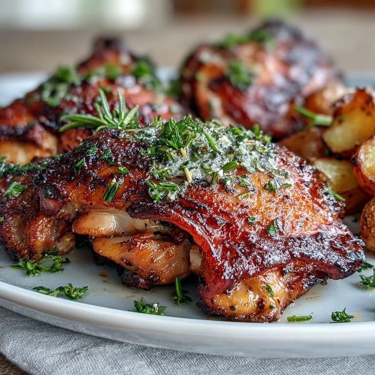 Pin this The secret to this dish lies in the aromatic marinade of fresh rosemary, thyme, and parsley combined with bright lemon zest and juice. As the chicken roasts, the herbs perfume the meat while the potatoes become golden and crispy on the outside, tender on the inside. The result is a complete meal that delivers comfort and elegance in equal measure, making it ideal for both special occasions and weeknight dinners when you want something truly satisfying.
