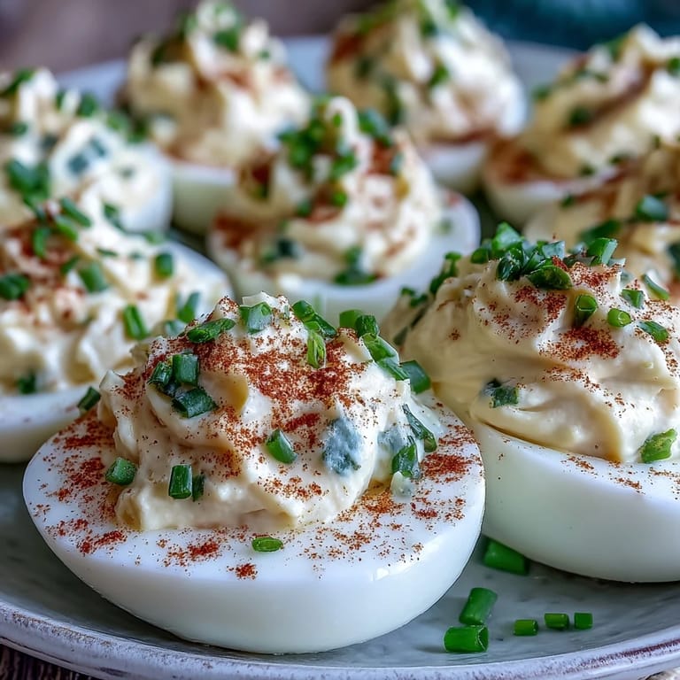 Pin this I was arranging appetizers for a backyard gathering when my neighbor leaned over the fence and asked what smelled so good. Nothing was cooking, just eggs cooling on the counter, but something about the tangy mustard and cream cheese already mixing in my mind made the whole kitchen feel alive. These deviled eggs became the dish everyone asked about before they even tasted them. The secret isnt in fancy ingredients, its in the balance of creamy, tangy, and just enough bite to make you reach for another. They disappear faster than anything else I make.