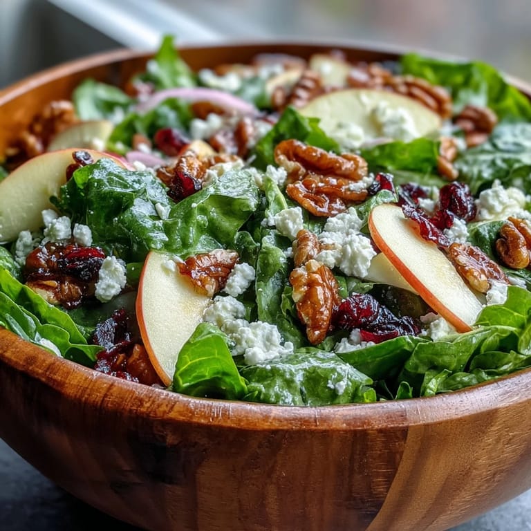 Pin this There's something about autumn that makes me crave salads again, which sounds backward until you taste apples at their peak alongside walnuts still warm from the oven. My neighbor brought over a bowl like this one afternoon, and I realized I'd been making salads too heavy, too complicated, missing the point entirely. This one arrived at the table looking almost effortless, but each bite had this perfect balance of sweet, tart, and creamy that made me want to know exactly what she'd done. She laughed and walked me through it right there in the kitchen, and now it's become my go-to when I need something that feels both nourishing and indulgent without any real effort.